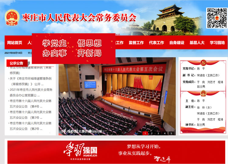 棗莊市人民代表大會是棗莊市的國家權力機關。 棗莊市人民代表大會每屆任期五年,每年至少舉行一次會議。會議由市人大常委會召集。經(jīng)過五分之一以上代表建議,可以臨時召集市人民代表大會會議。1960年,棗莊市人民代表大會建立,并召開了棗莊市第一屆人民代表大會第一次會議。 棗莊市人民代表大會行使下列職權:在本行政區(qū)域內(nèi),保證憲法、法律、行政法規(guī)和上級人民代表大會及其常委會決議的遵守和執(zhí)行,保證國家計劃和國家預算的執(zhí)行;審查和批準本市的國民經(jīng)濟和社會發(fā)展計劃、預算以及它們執(zhí)行情況的報告;討論、決定本市的政治、經(jīng)濟、教育、科學、文化、衛(wèi)生、環(huán)境和資源保護、民政、民族等工作的重大事項;選舉市人大常委會的組成人員;選舉市長、副市長;選舉市監(jiān)察委員會主任、市中級人民法院院長和人民檢察院檢察長。選出的市人民檢察院檢察長,須報經(jīng)省人民檢察院檢察長提請省人大常委會批準;選舉省人民代表大會代表;聽取和審查市人大常委會的工作報告;聽取和審查市人民政府、中級人民法院和人民檢察院的工作報告;改變或者撤銷市人大常委會的不適當?shù)臎Q議;撤銷市人民政府的不適當?shù)臎Q定和命令;保護社會主義的全民所有的財產(chǎn)和勞動群眾集體所有的財產(chǎn),保護公民私人所有的合法財產(chǎn),維護社會秩序,保障公民的人身權利、民主權利和其他權利;保護各種經(jīng)濟組織的合法權益;保障少數(shù)民族的權利;保障憲法和法律賦予婦女的男女平等、同工同酬和婚姻自由等各項權利。 棗莊市第十六屆人民代表大會代表共有394名。市十六屆人大一次會議于2017年2月19日至23日舉行,決定設立市第十六屆人民代表大會法制委員會、內(nèi)務司法委員會、財政經(jīng)濟委員會、教育科學文化衛(wèi)生委員會、城鄉(xiāng)建設環(huán)境保護委員會、農(nóng)業(yè)與農(nóng)村委員會、民族僑務外事委員會。 棗莊市十六屆人大三次會議于2019年1月6日至9日舉行,決定增設棗莊市第十六屆人民代表大會社會建設委員會和更名棗莊市第十六屆人民代表大會內(nèi)務司法委員會為棗莊市第十六屆人民代表大會監(jiān)察和司法委員會。 |
