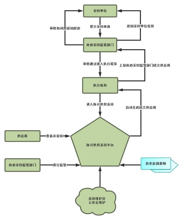 一、采購系統(tǒng)用戶組成 財政局政府采購協(xié)議供貨系統(tǒng)(以下簡稱本系統(tǒng))是由財政局政府采購管理辦公室管理,交由協(xié)議供貨商、招標(biāo)公司共同使用的一套在線式協(xié)議供貨系統(tǒng)。主要實現(xiàn)政府招投標(biāo)的電子化,方便采購工作提高效率。 1、協(xié)議供貨商是指各類協(xié)議供貨范圍內(nèi),具有履行協(xié)議供貨協(xié)議書約定的職責(zé)和義務(wù)能力的代理商或分銷商。由政府采購管理辦公室進行管理并發(fā)放帳戶,如果個別供貨商有不良行為政府采購管理辦公室有權(quán)進行停止其進入本系統(tǒng)的權(quán)力。 2、招標(biāo)公司負(fù)責(zé)進行招投標(biāo)的運作和管理。 3、政府采購管理辦公室進行全程監(jiān)管,防止出現(xiàn)不正常交易。
